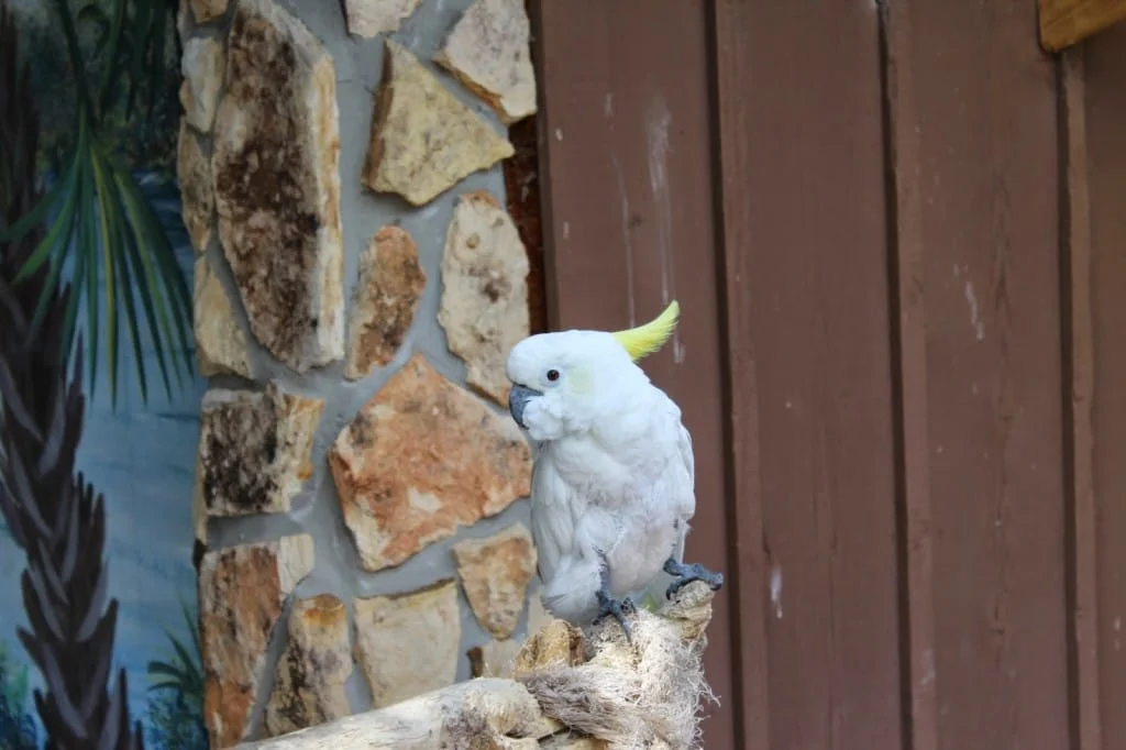 O aviário é uma graça. Por US$5,00 você compra 3 palitinhos com alimentos para os pássaros e os periquitos vem comer na nossa mão. É demais!!! Minha filha amou. Eles pousam em nós e ficam tirando os grãos dos palitos.