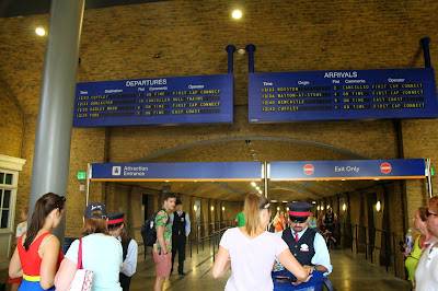 A estação de King’s Cross é muito mais bacana… Tem uma série de referências ao filme, como as malas, as corujas que se movimentam… mas o mais bacana é a plataforma 9 3/4, onde com um truque de espelhos, você tem a impressão que as pessoas atravessam a parede, exatamente como os bruxos fazem nos filmes.