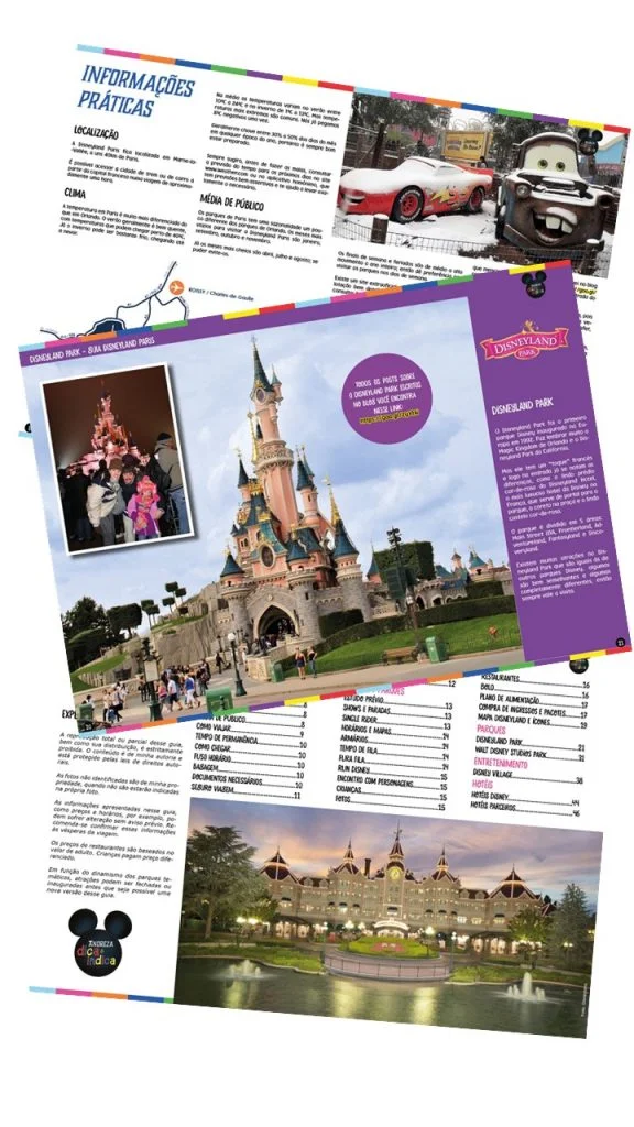 Tudo para a sua visita à Dineyland Paris. Desde documentações necessárias para viajar, até melhores épocas do ano. Além disso, você vai encontrar todo o descritivo das atrações e detalhamento de nível de radicalidade, altura mínima e outras informações.