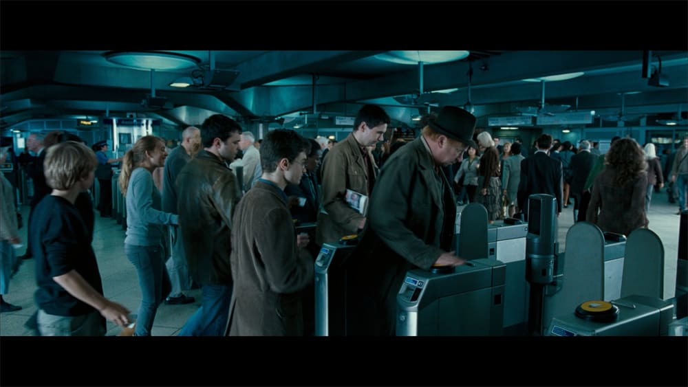 Cena filmada: Em Ordem da Fênix, Arthur Weasley acompanha Harry até o Ministério da Magia e fica encantado ao experimentar o metrô de Londres pela primeira vez. A cena foi gravada dentro da estação Westminster, quando Arthur tenta passar pelas catracas e se surpreende com o funcionamento dos bilhetes eletrônicos, achando tudo muito engenhoso para “trouxas”. É um momento leve e divertido, que mostra o contraste entre o mundo mágico e o cotidiano londrino.