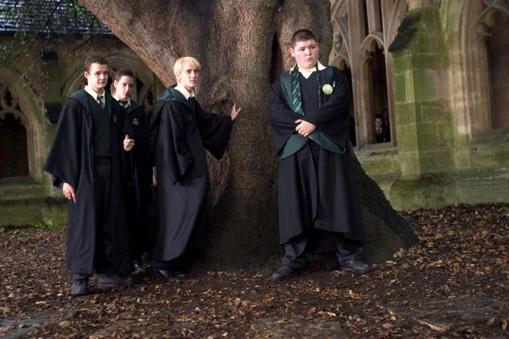 Curiosidade das filmagens: A árvore ficou conhecida entre os fãs como a “Árvore do Draco”, e ainda está no gramado do pátio. É possível ver também as arcadas medievais da faculdade, que serviram de fundo para várias sequências. Nos extras do filme, há até diálogos cortados entre Harry e Rony gravados nesse mesmo local.