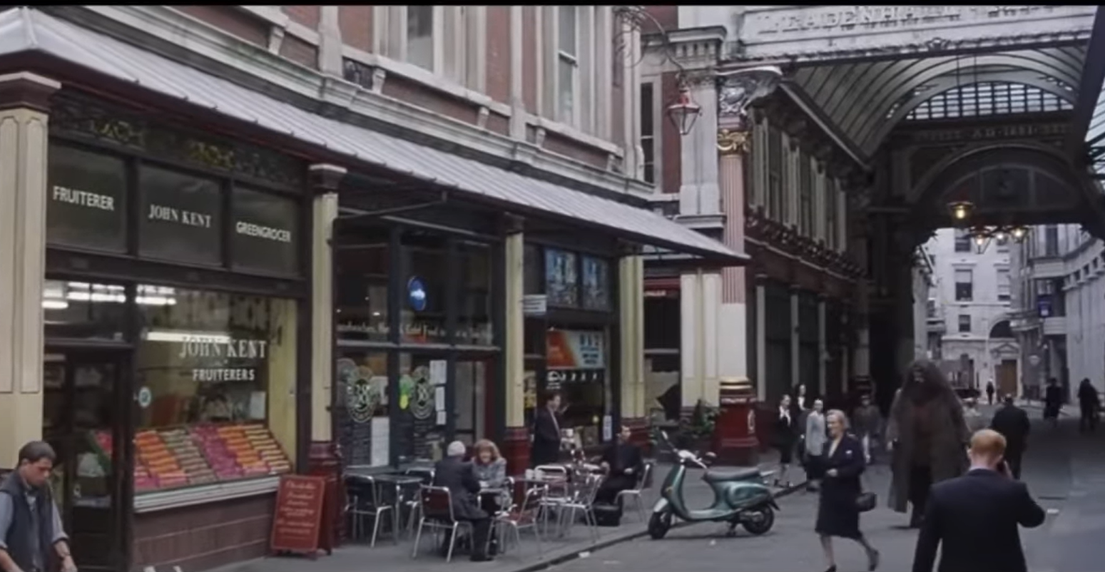 Cenas: No primeiro filme, é pelas arcadas vitorianas do Leadenhall Market que Hagrid conduz Harry pela primeira vez ao mundo bruxo. O mercado representou a Charing Cross Road, onde nos livros fica a entrada do Beco Diagonal.
