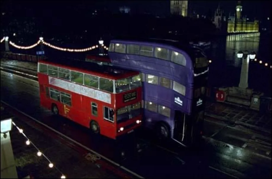 Cenas: Em Prisioneiro de Azkaban, o Noitibus Andante leva Harry em um passeio alucinante por Londres. Uma das sequências mais lembradas é quando o ônibus roxo “afina” para conseguir passar entre dois ônibus de dois andares; essa tomada foi filmada na Lambeth Bridge, que cruza o rio Tâmisa entre Westminster e Lambeth.