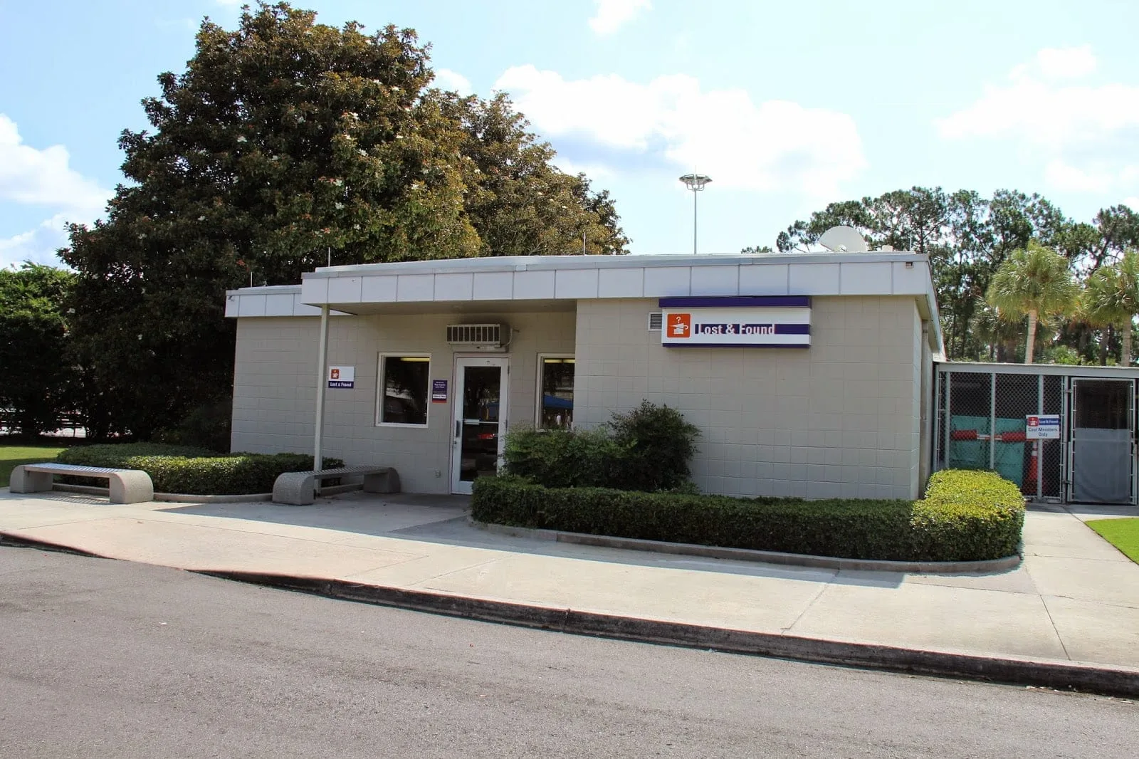 O Lost & Found da Disney inteira fica perto no Transportation e Ticket Center, perto do Magic Kingdom. Se estiver de carro, você deverá passar pelas guaritas de estacionamento do Magic Kingdom. Informe que você irá ao Lost & Found e não pagará estacionamento. Coloque Seven Seas Drive no seu GPS.