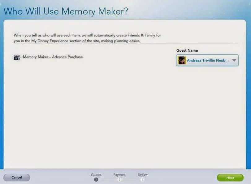 A pessoa que tiver o Memory Maker tem que cadastrar a demais pessoas que ela quer dividir o Memory na conta dela no My Disney Experience como family e friends e quem vai administrar é o dono da conta do My Disney Experience.