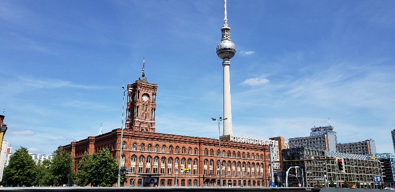 Alexanderplatz é uma das principais praças de Berlim e funciona como um grande ponto de encontro da cidade. Ela ficou conhecida no período da Alemanha Oriental, quando era um dos centros comerciais mais importantes de Berlim, e até hoje mantém esse movimento intenso. A região é cheia de lojas, shoppings, restaurantes, hotéis e conexões de metrô, bonde e S-Bahn, então acaba virando referência para quem circula pela cidade. Durante a Segunda Guerra, grande parte dos prédios ao redor foi destruída, e a praça acabou sendo totalmente remodelada no pós-guerra; quando o Muro foi construído, em 1961, Alexanderplatz ficou no lado Oriental, o que fica bem evidente na arquitetura.