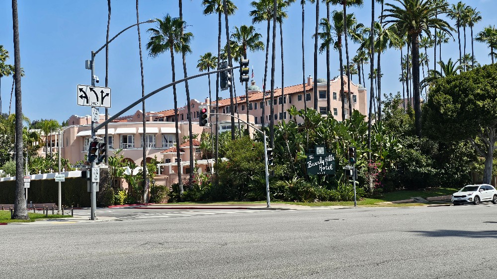 O The Beverly Hills Hotel é um dos hotéis mais icônicos de Los Angeles, conhecido pelo prédio rosa e por toda a história ligada a celebridades de Hollywood, já que muitos artistas se hospedaram ali ao longo dos anos.