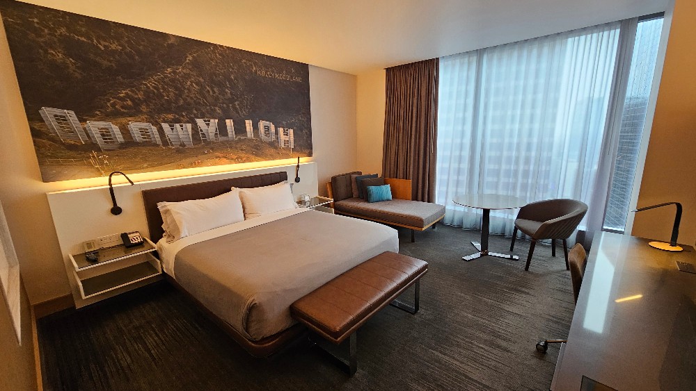 Já o Loews Hollywood Hotel tem localização imbatível, praticamente dentro do complexo da Hollywood Boulevard, a poucos passos do Dolby Theatre e da Calçada da Fama. Hotel moderno, com piscina no rooftop e vista para o letreiro de Hollywood em determinados quartos. Não inclui café da manhã e o estacionamento é pago à parte. Já fiquei nesse hotel e realmente recomendo. A partir de $270.