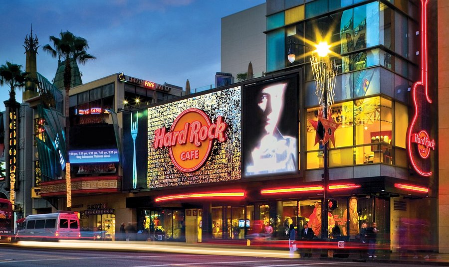 O famoso Hard Rock Cafe Hollywood é um restaurante temático com decoração musical e cardápio americano variado. Fica em localização central e costuma ser uma escolha prática para quem quer um lugar fácil e sem erro. Abre diariamente. Tem post no blog sobre o Hard Rock Cafe.