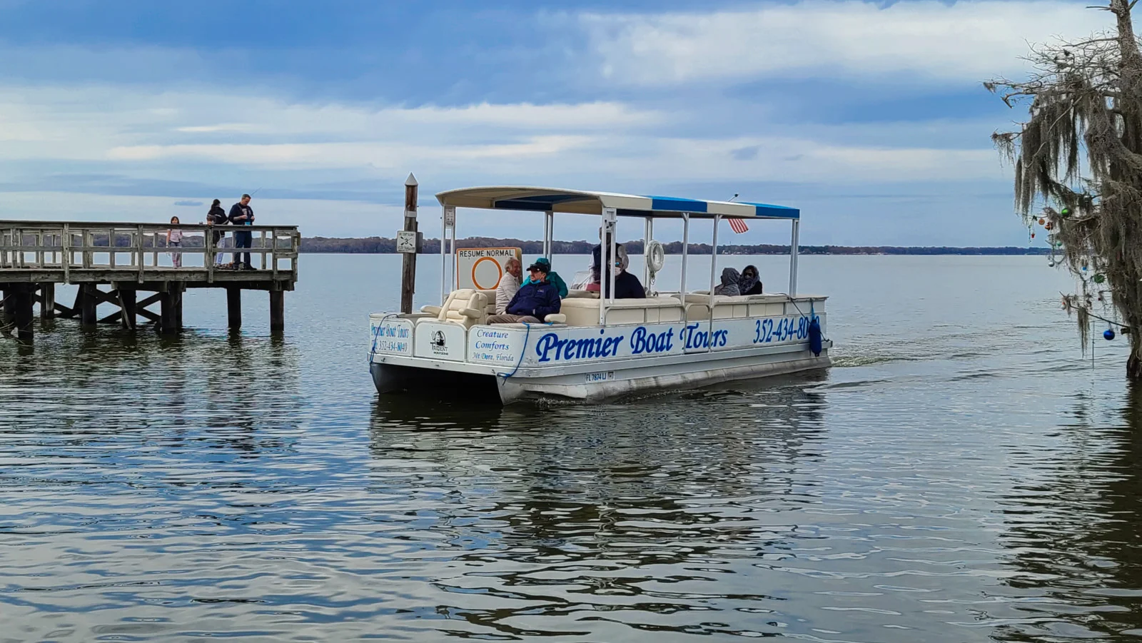 Bem em frente ao Lakeside Inn sai um passeio de barco que faz o percurso pelo Lake Dora e pelo Dora Canal. A empresa que faz o tour é a Premier Boat Tours. A parte do tour no lago nem é tão interessante, mas a parte no canal é linda. Tem várias casinhas à beira do canal e a vida selvagem é imensa. Aves de diversos tipos podem ser vistas e algumas vezes também é possível ver jacarés. Infelizmente no nosso dia eles não apareceram, mas mesmo assim vale muito o passeio. O tour tem 2 horas de duração e ocorre duas vezes ao dia. O custo é de US$32 para adulto e US$20 para crianças entre 3 e 10 anos e o agendamento deve ser feito direto no site deles.