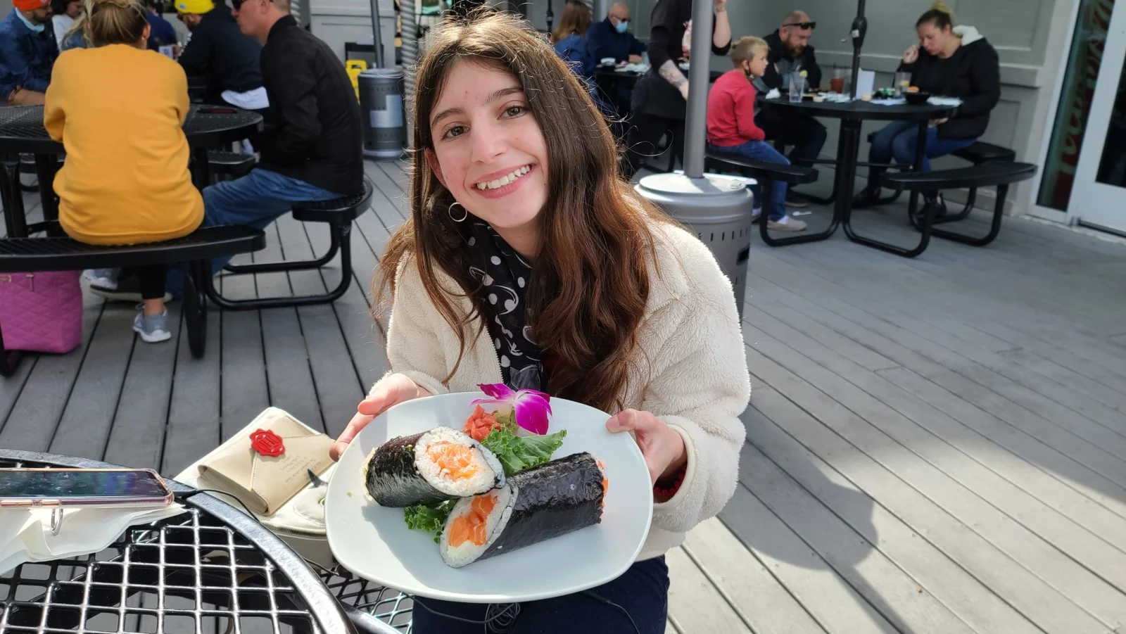 O que nós visitamos foi o Wave Asian Bistro & Sushi, um restaurante japonês com pratos super diferentes. Eles tem shushi burger, sushi pizza, sushi dog… Parecem bizarros à primeira vista, mas é delicioso. Eu provei o sushi burger e gostei muito. E é muito grande; não consegui comer inteiro e trouxe para casa para o jantar. Custa US$18, mas dá para dividir. Para quem gosta de comida japonesa, vale experimentar.