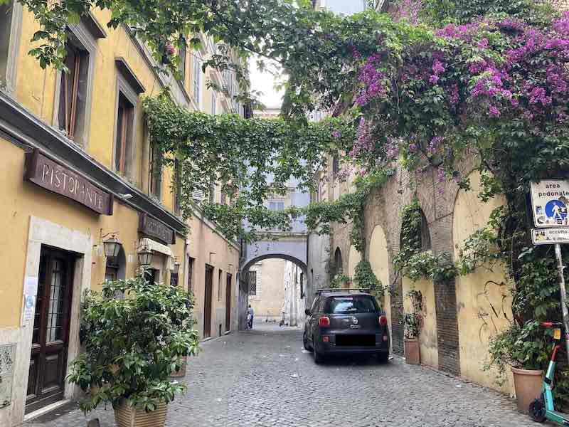 O Trastevere é um bairro muito charmoso de Roma, cheio de ruelas de paralelepípedos, fachadas coloridas e uma atmosfera boêmia irresistível. É ali que muitos romanos saem para jantar, e as trattorias tradicionais servem massas caseiras e vinhos locais. O ponto central do bairro é a Piazza di Santa Maria in Trastevere, onde fica uma das igrejas mais antigas de Roma, famosa pelos mosaicos dourados que brilham sob qualquer luz. Caminhar sem rumo por ali é a melhor forma de conhecer o bairro, onde cada esquina revela um restaurante, um bar ou uma pequena lojinha interessante.