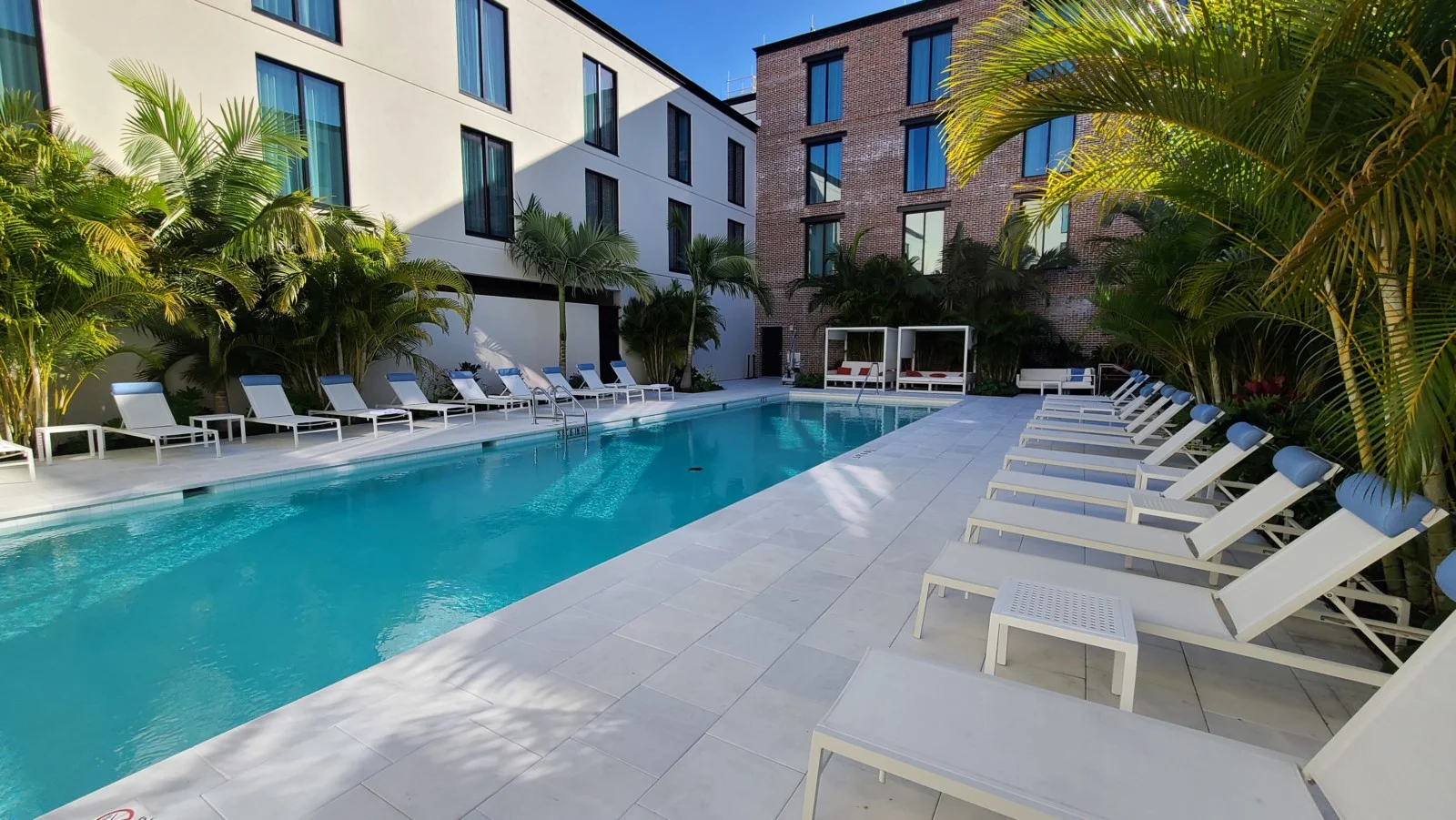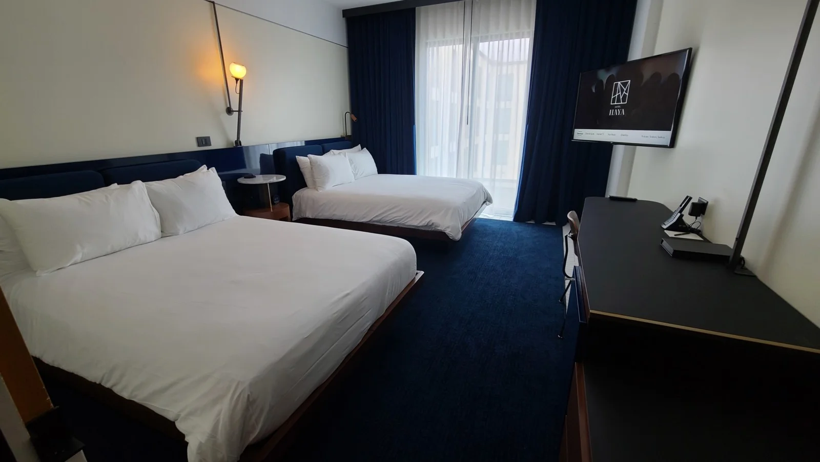 Eles possuem diferentes tipos de acomodação, mas nós ficamos num quarto com duas camas queen com vista para a piscina. O quarto tem um tamanho super bom e o banheiro também. A decoração é clean e bem moderna.