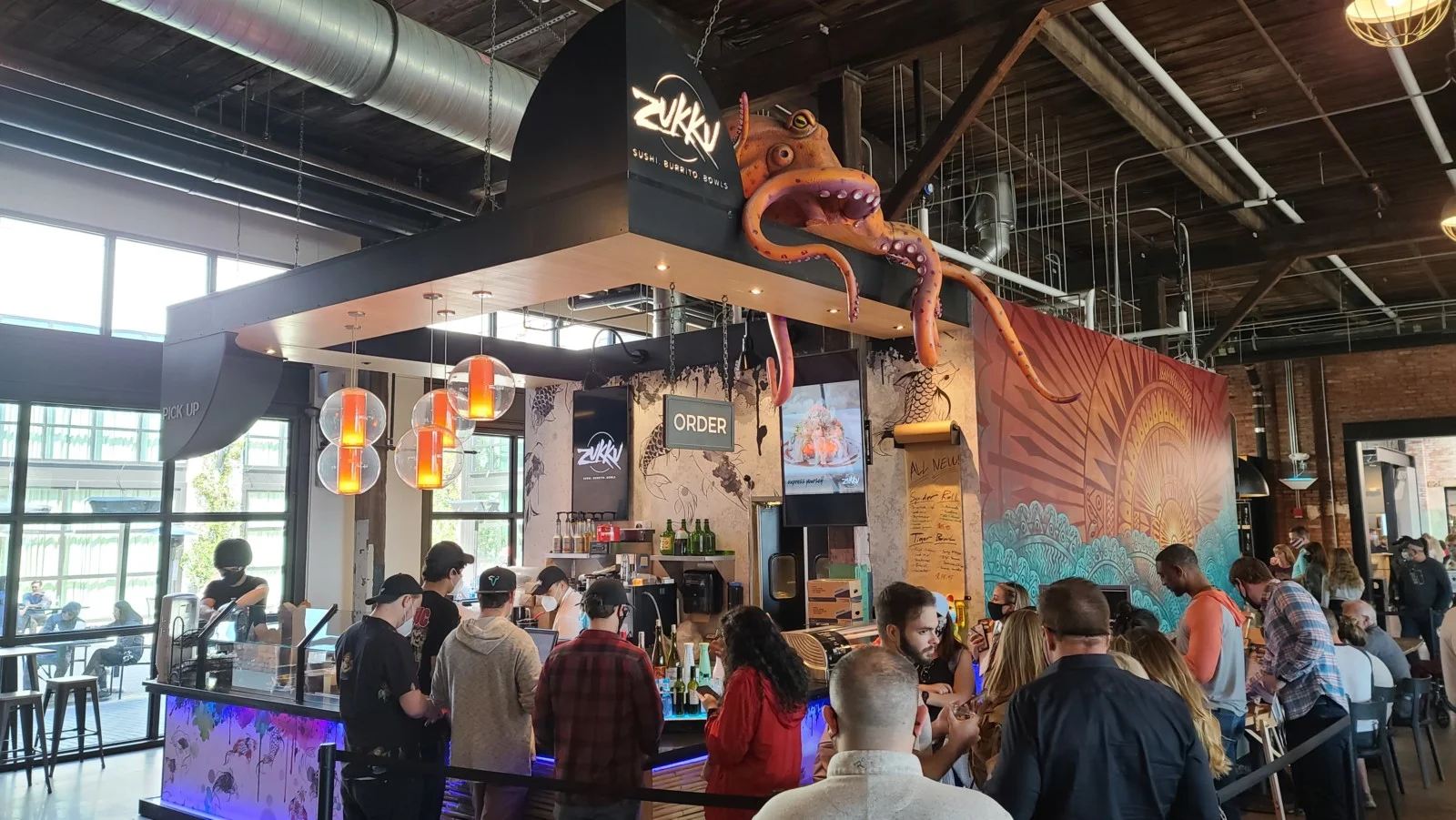 Zukku Sushi – é um quiosque que fica dentro do Armateur Works e vende enrolados, poke e sushi burrito, uma espécie de temaki enrolado de forma diferente. A comida estava deliciosa. Ele opera no sistema de praça de alimentação: você faz um pedido, quando está pronto eles chamam e você procura uma mesa no espaço dividido com os demais restaurantes. Como dentro do Armature Works, tem várias outras opções, quem não curte comida japonesa pode pedir outra coisa em outro local, mas mesmo assim sentar junto. Os pratos custam a partir de US$7,00.