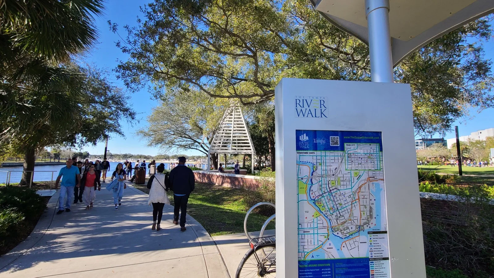 O Riverwalk é uma espécie da calçadão que margeia o Hillsborough River com 4km de extensão. Além de muito agradável e arborizado, o Riverwalk passa por boa parte das principais atrações e dos parques da cidade. Um lugar delicioso para passear e com paisagens lindas. Começa no Florida Aquarium e termina no Armature Works, passando pelo History Center, Amalie Arena, Sparkman Wharf, o porto de Tampa, centro de convenção e muitos outros pontos. Site do Riverwalk.