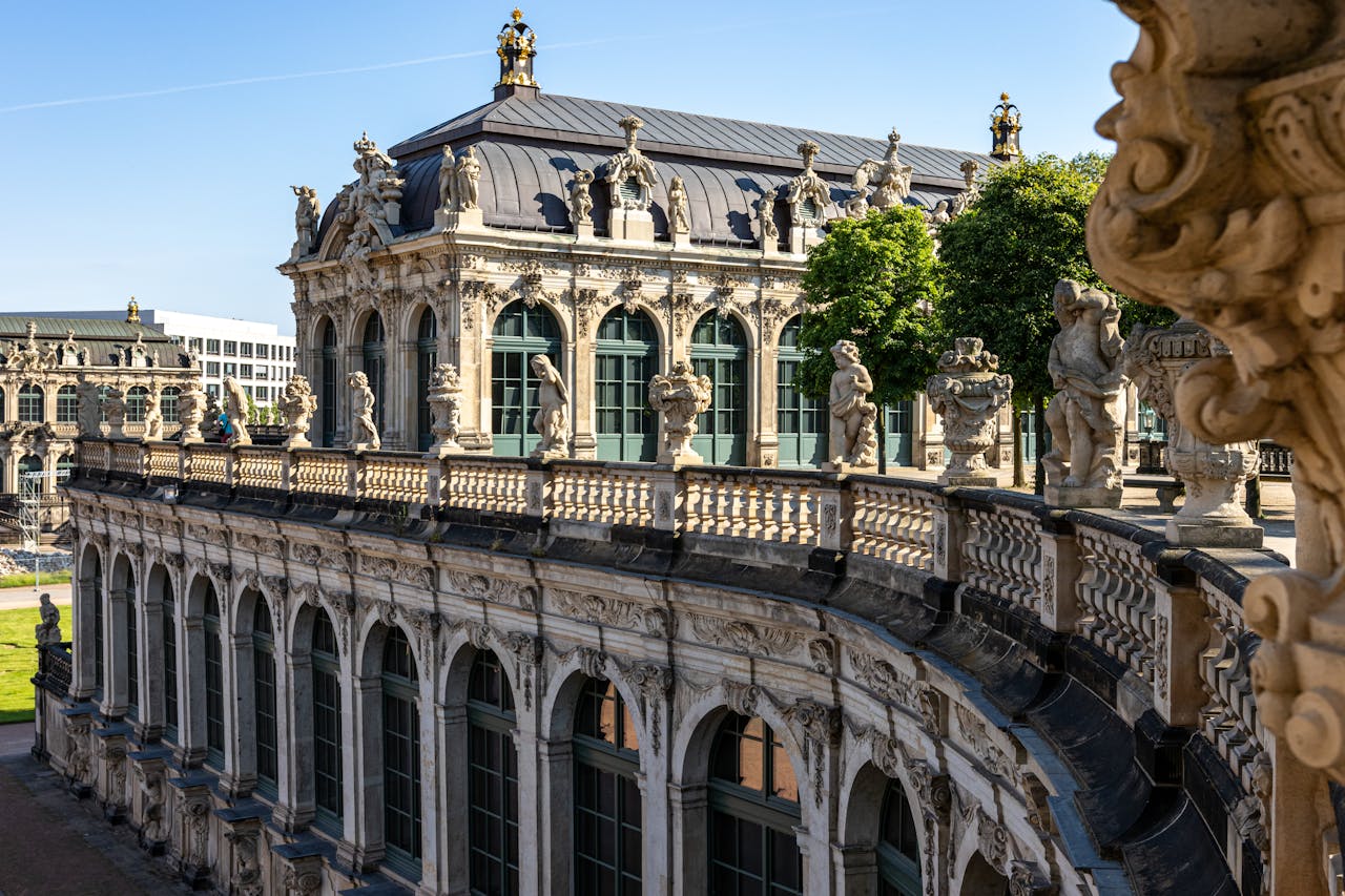 O Zwinger é um dos conjuntos barrocos mais importantes da Europa e um dos lugares que mais impressionam em Dresden. O complexo reúne pátios amplos, galerias com arcos, esculturas detalhadas e jardins internos que mostram bem o estilo grandioso da antiga corte saxônica. Dentro do Zwinger funcionam três museus principais: