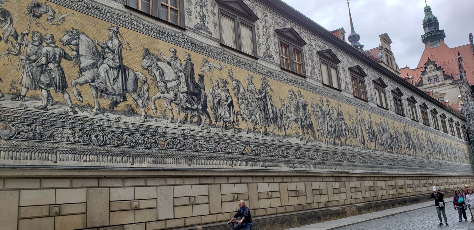 O Fürstenzug é um mural enorme criado no século XIX para celebrar os 800 anos da dinastia Wettin, uma família nobre que governou a Saxônia por quase nove séculos e foi responsável por grande parte do desenvolvimento político, artístico e arquitetônico da região. No mural aparecem, em sequência, todos os governantes desse período.