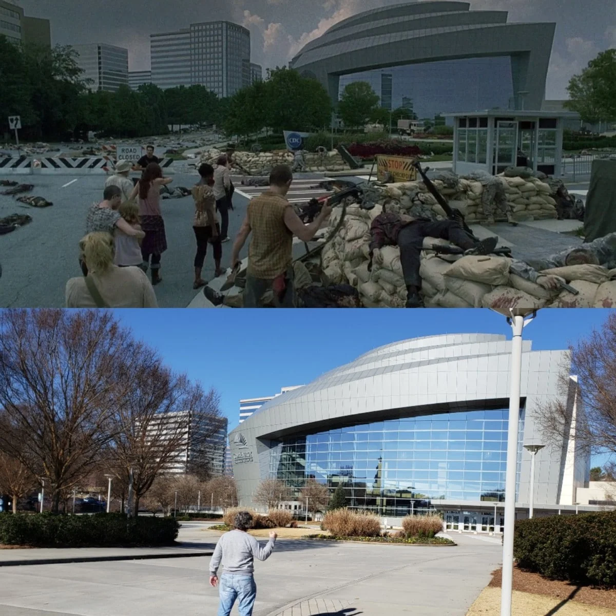 Centro de Controle de Doenças – Ainda na primeira temporada, Rick e o seu grupo saem do acampamento (na pedreira mencionada mais acima) e resolvem seguir para o Centro de Controle de Doenças para tentar encontrar a cura para o “mal zumbi”. Lá encontram somente um cientista e um ou dois capítulos depois o local ativa o sistema automático de segurança, se explode e fica completamente destruído. Esse prédio é na verdade uma casa de espetáculos, a Cobb Energy Performing Arts Centre2800 Cobb Galleria Pkwy.