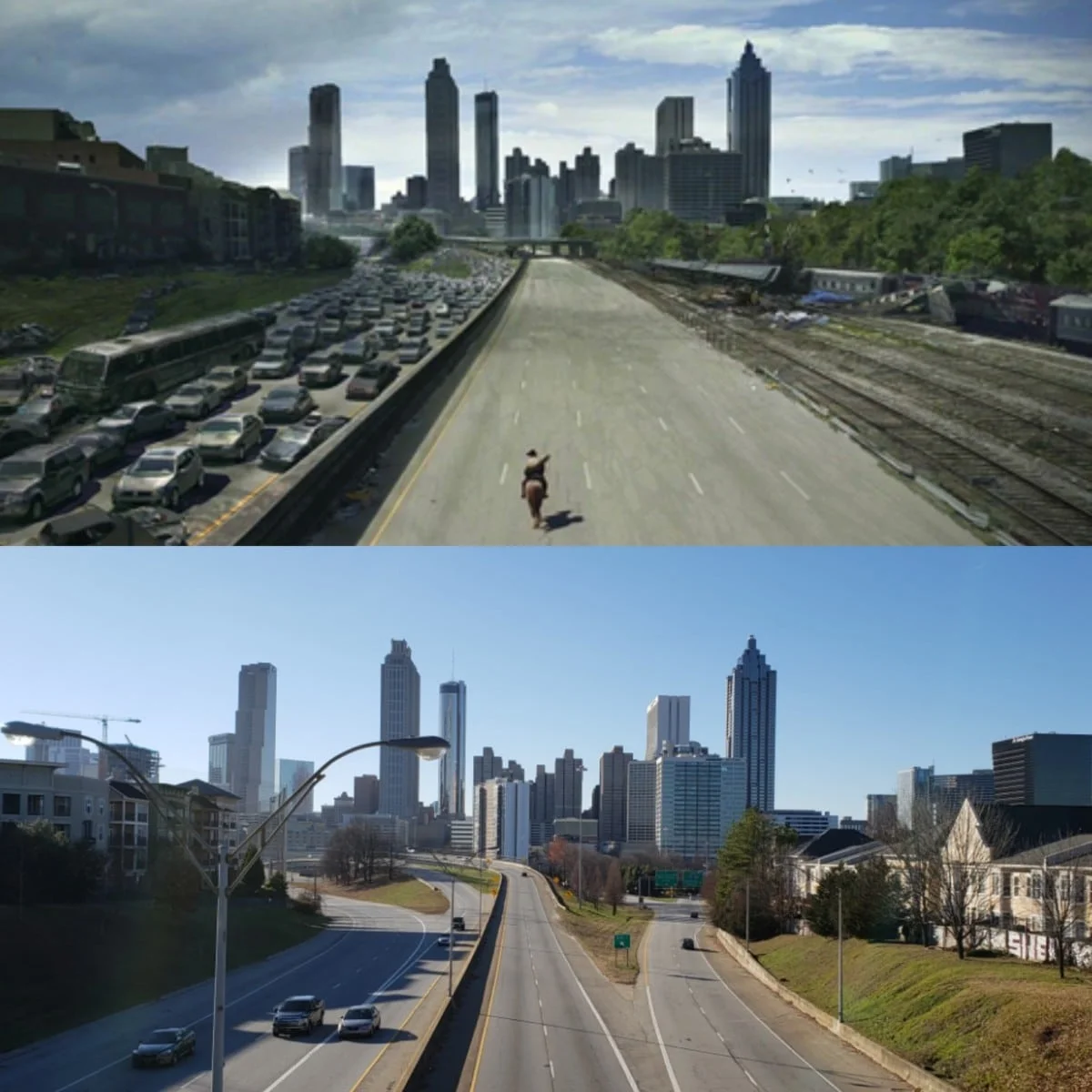 Rick chega a Atlanta – A 10 minutos dali fica a ponte de onde se tem a mesma visão da cena onde o Rick chega a Atlanta de cavalo e entra no centro da cidade. É uma das cenas mais famosas e era o cartaz da primeira temporada. 170 Jackson St NE, Atlanta.