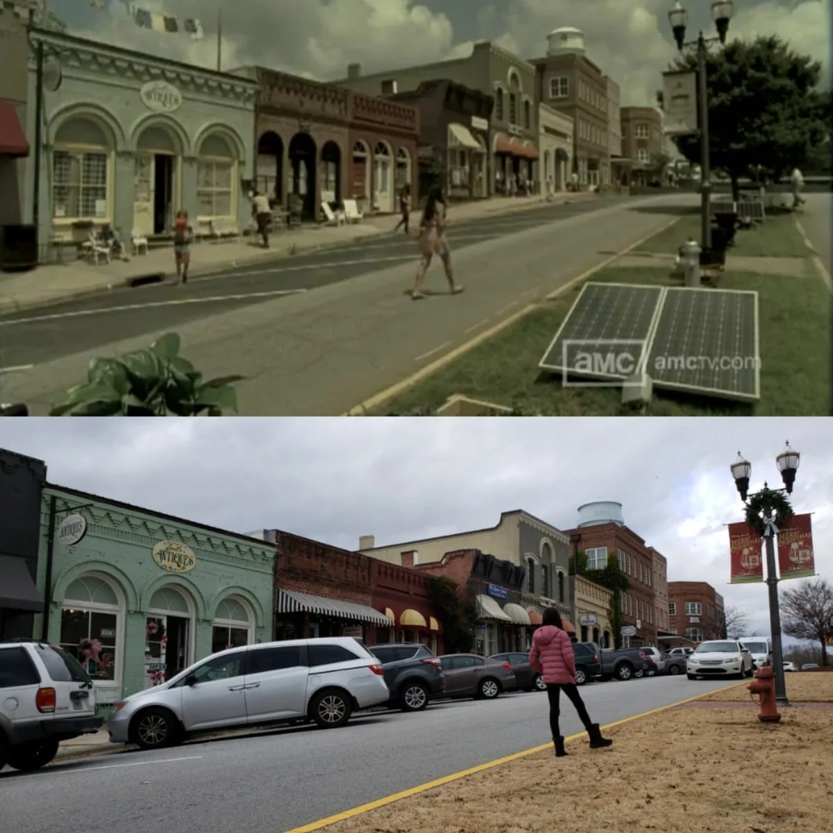 Alexandria – A comunidade de Alexandria fica na cidade de Senoia e é realmente toda murada. Lá dentro moram algumas famílias dentro das casas que na série são ocupadas pelos personagens, mas algumas construções são só cenográficas. Essas famílias concordaram em morar dentro do “cenário da série” e devem seguir diversas regras. É possível ver os muros de Alexandria do lado de fora, mas só é permitido entrar com o tour. Se não fizer o tour, essas são as visões que terá do local. McKnight Dr, Senoia.