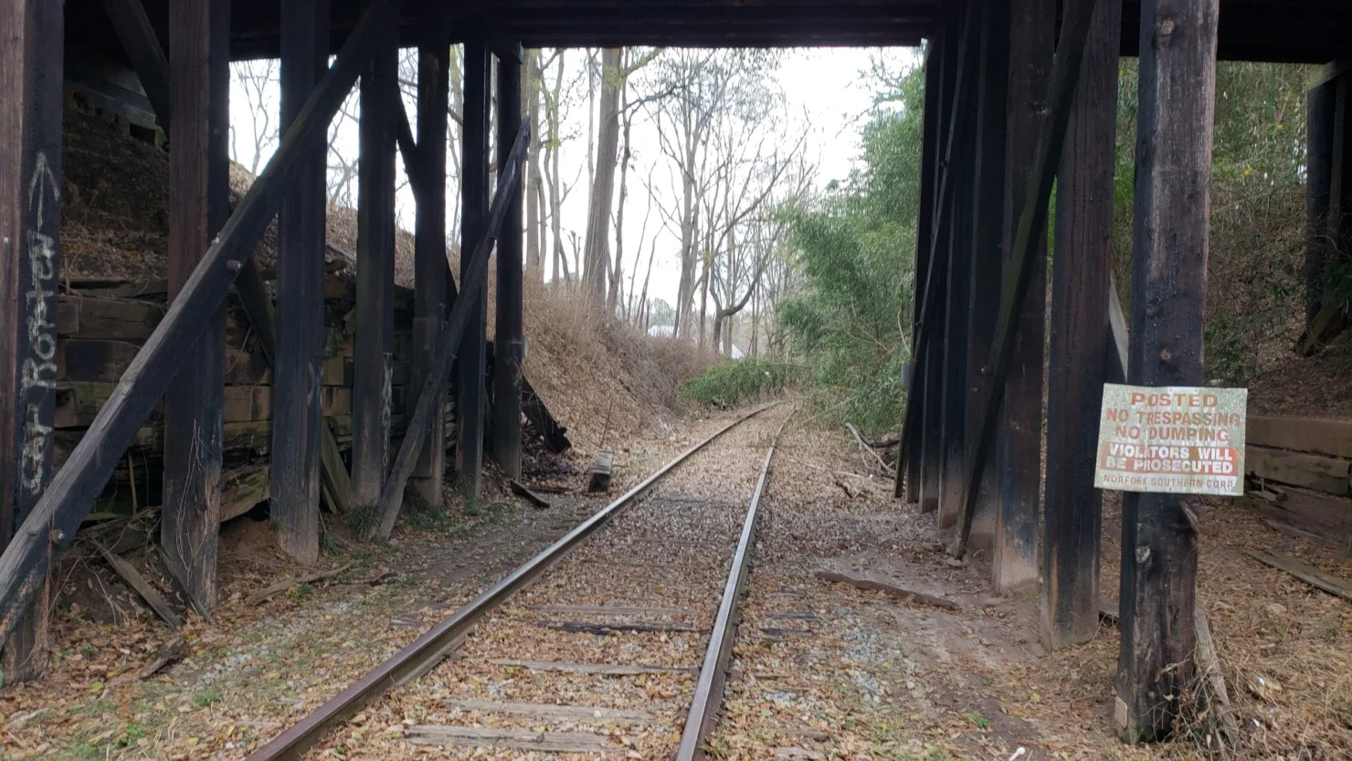 Trilho do trem para o Terminus – Parte do trilho do trem que os personagens percorrem para chegar ao Terminus fica ali, mesmo, em frente de Alexandria. Muitos trechos de trilhos de trem aparecem na série e a região tem muitos deles, mas algumas cenas foram gravadas nesse trecho. Uma das principais é a cena em que Carol, Tyresse junto com as duas meninas Lizzie e Mika e a Judith ainda bebê veem uma das placas para o Terminus. A placa do Terminus não está mais lá para fotos. 1 Main St, Senoia.