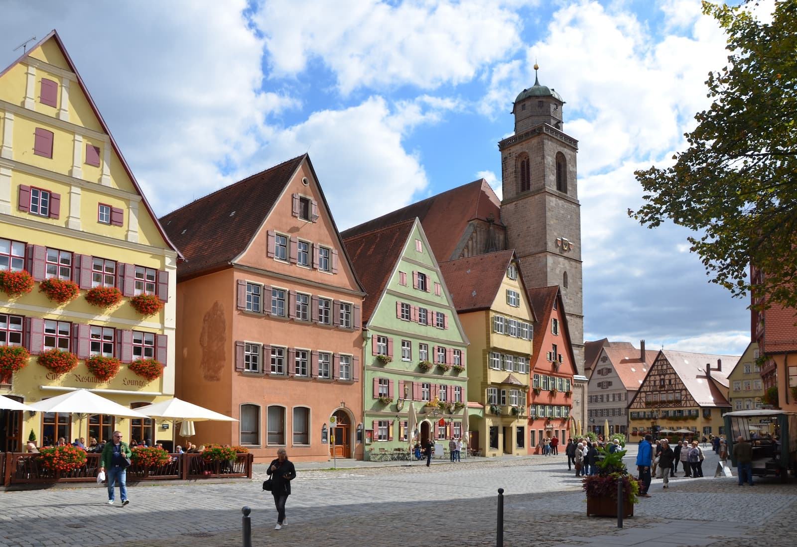 Dia 2: Passe a manhã em Rothenburg, visitando o Plönlein, a muralha medieval e o Burggarten. Depois, siga viagem para Dinkelsbühl e faça uma parada rápida para ver a Marktplatz e caminhar pelas ruas coloridas. Continue até Nördlingen, suba a torre Daniel ou caminhe pela muralha circular, e então finalize o dia seguindo para Augsburg, onde você pode pernoitar.