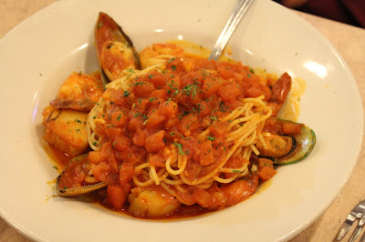 O local é bem aconchegante e gostoso. O cardápio é vasto, com opções de carne, frango, massa, pizza, saladas e antepastos. O cardápio pode ser consultado no site do Vinito. Eu e minha mãe pedimos exatamente o mesmo prato, o Shrimp Scampi, espagueti com camarões. Estava delicioso!!!