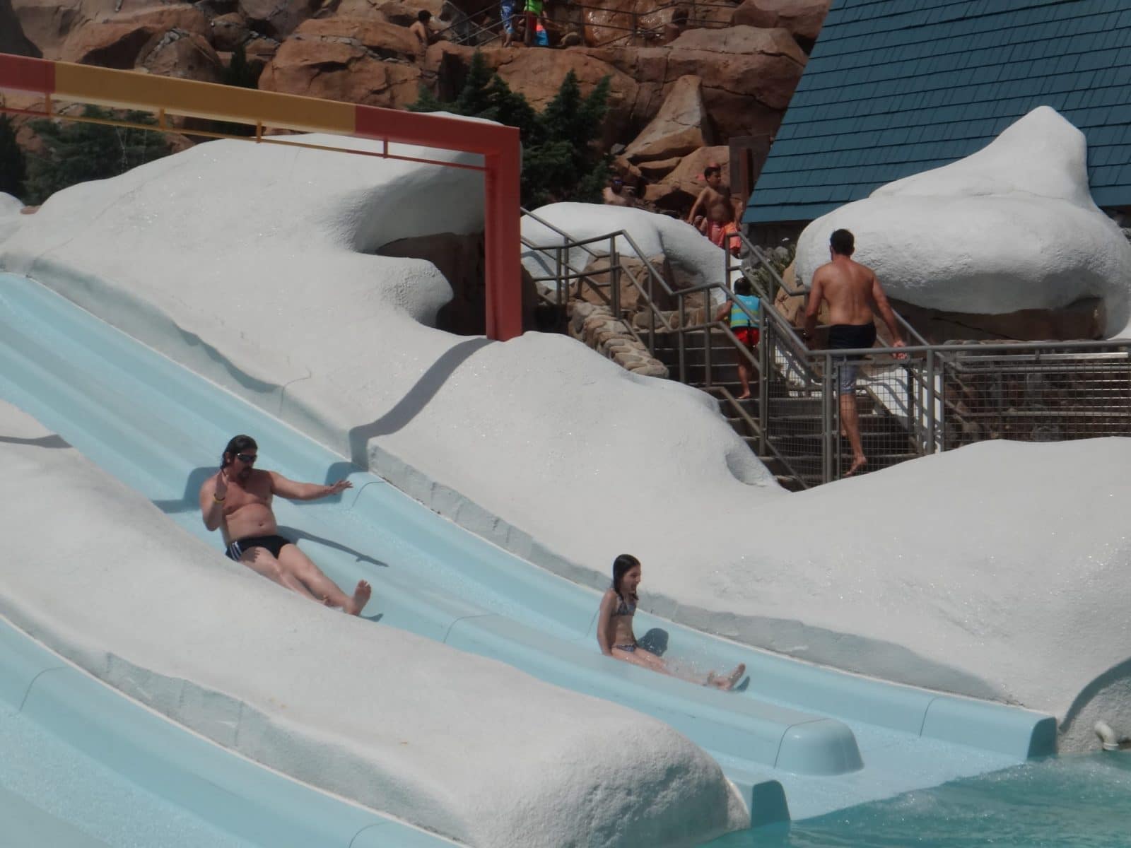 Uma das coisas bacanas do Blizzard Beach, é que ele é um parque tanto para crianças pequenas, quanto para quem procura atrações radicais. São 3 tobogãs mais radicais: o Summit Plummet, Slush Gusher (esses dois no topo do Mount Gushmore, acessados através do teleférico) e o Downhill Double Dipper.