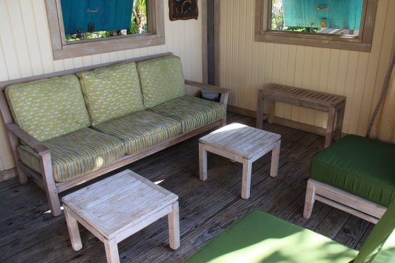 Para cada cabana, também há na praia um guarda-sol, duas espreguiçadeiras e duas cadeiras. Aliás, a faixa de praia onde ficam as cabanas é exclusiva para esses passageiros, então a praia fica super tranquila, pois como são poucas cabanas e também o pessoal se espalha pela ilha fazendo outras atividades, a praia fica o maior sossego em alguns momentos do dia.