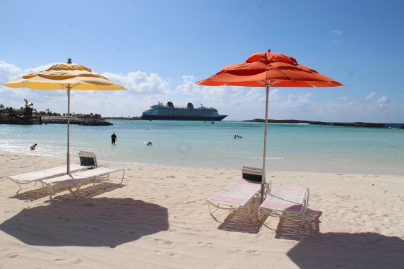 E ainda demos a maior sorte de pegar um dia lindo. Ficar sentado ali, só olhando o Disney Dream ancorado lá no fundo, já era o suficiente para alegrar o nosso dia. 🙂
