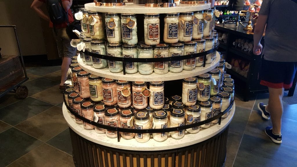 Eles vendem uns doces numas embalagens muito lindas, parecendo umas poções ou algo do gênero. Tão lindo que dá dó de comer… Muito bacana para dar de presente. Tem algodão doce, balas e muitos outros doces industrializados.