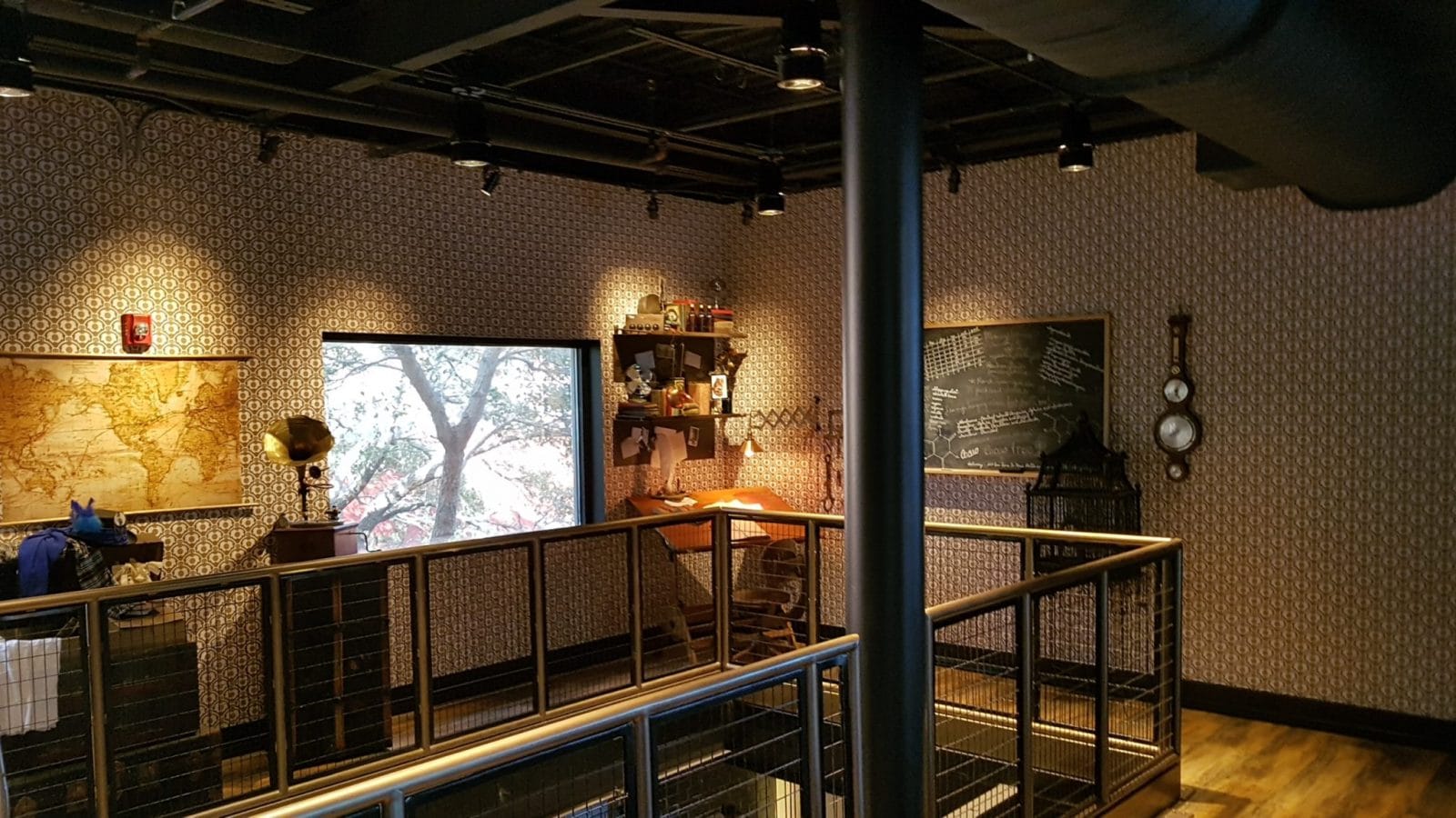 No andar de cima, além de mais mesas, o local conta com um bonito bar, ums super janela com vista para o Citywalk e ainda é possível ver o escritório (fictício, é claro) da Penelope, decorado com um montão de coisas interessantes.
