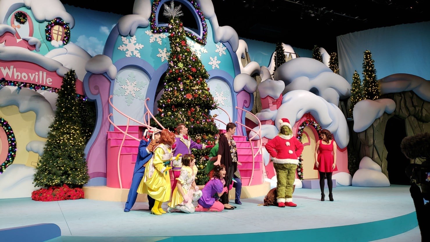 Esse show tem duração de uns 20 minutos e ocorre num teatro e conta de forma resumida a estória do Grinch, que não gosta do Natal e tenta destruir a festa dos “Quem”, nome do povo do filme.