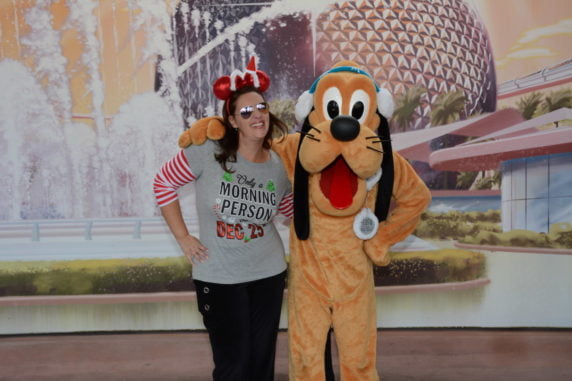 O único personagem em roupinha diferente que encontrei no parque foi o Pluto, que posa perto da “bola” com acessórios de inverno. Os demais personagens continuam com as mesmas roupas de sempre.