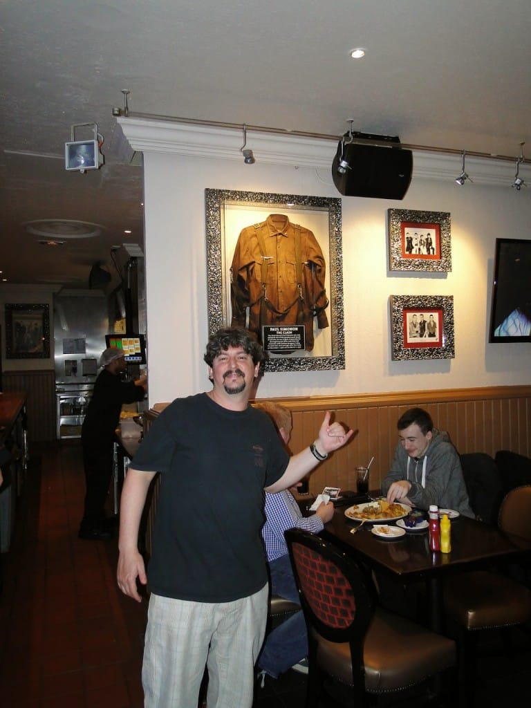 Na unidade da Hard Rock Cafe Orlando, e também na Hard Rock Cafe New York, na entrada do restaurante foi tirada uma foto e durante o jantar foi nos oferecida a um custo em torno de US$20,00 e são entregues também mais cópias da mesma foto. Não conseguimos resistir 😉
