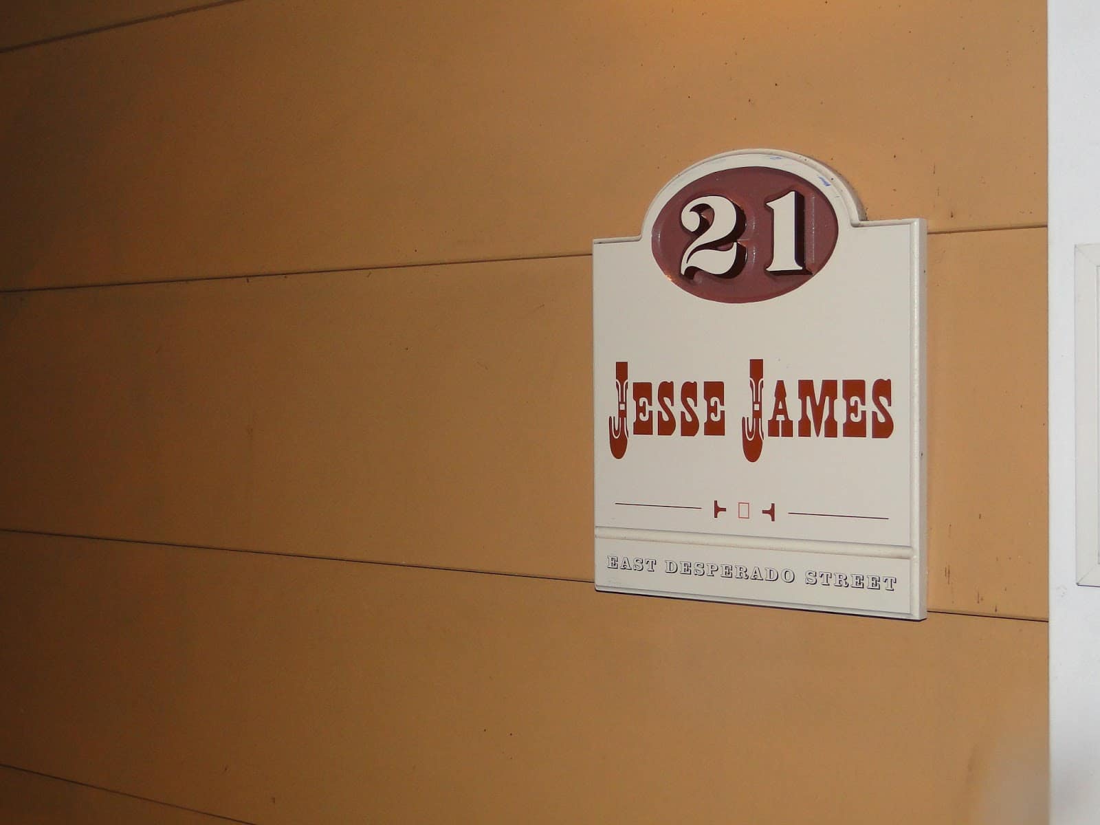 Tudo é temático… Os prédios possuem nomes de personagens conhecidos no velho oeste: Jesse James, Billy The Kid, Geronimo… Nos corredores dos quartos cartazes de “procurados” enfeitam as paredes…