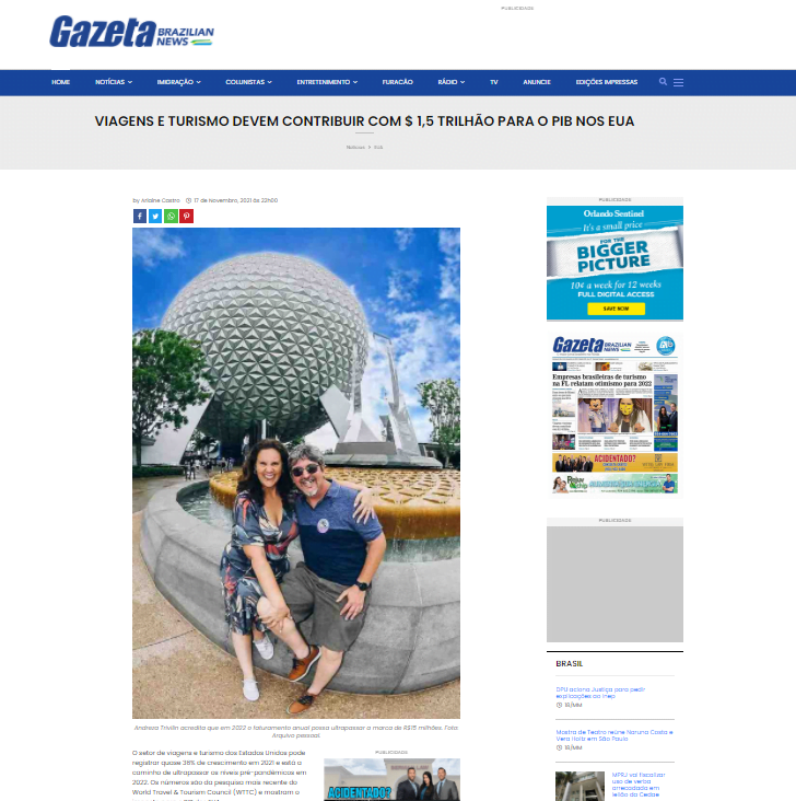 Viagens e turismo devem contribuir com $1,5 trilhão para o PIB dos Estados Unidos - Novembro/2021