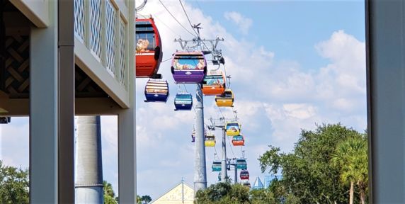 O Skyliner da Disney é um novo método de transporte da Disney por meio de teleféricos composto por 300 gôndolas em 8 cores diferentes: amarelo claro, amarelo escuro, laranja, vermelho, azul claro, azul escuro, verde e roxo.